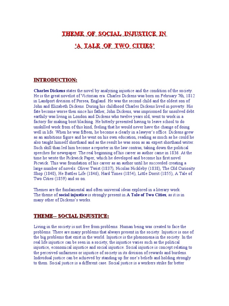 A Tale Of Two Cities Theme Of Social Injustice Pdf A Tale Of Two Cities Injustice